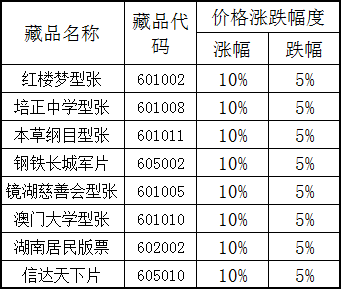 关于《红楼梦型张》等藏品调整价格涨跌幅度的公告