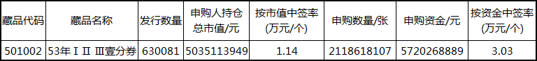 《53年Ⅰ Ⅱ Ⅲ壹分券》藏品申购中签公告